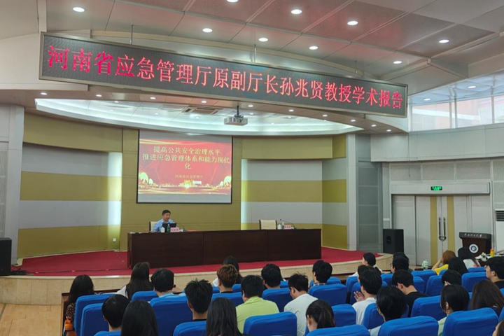 本网讯(通讯员 杨笑冰 李路醒)6月6日,应急学院于力行楼学术报告厅举行特聘教授聘任仪式暨专家报告会,聘任河南省应急管理厅原副厅长孙兆贤同志为学校特聘教授。应急学院院长徐顽强为孙兆贤颁发聘书并主持报告会。随后,孙兆贤作题为“提高公共安全治理水平,推进应急管理体系和能力现代化”的学术报告,该院全体教职工、本科生和研究生代表参加学习。