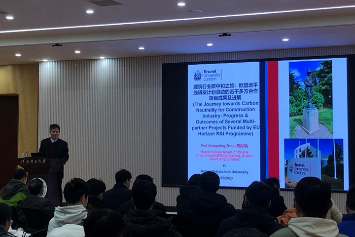 本网讯(通讯员 桂世磊 罗树琼)12月26日下午,英国伦敦布鲁内尔大学教授周向明应材料学院邀请,在该院2103为师生作了题为《建筑行业碳中和之旅: 欧盟地平线研发计划资助的若干多方合作项目成果及进展》的学术报告,相关专业教师、研究生和本科生参加了报告会。