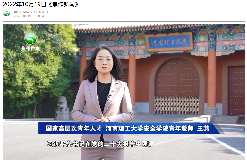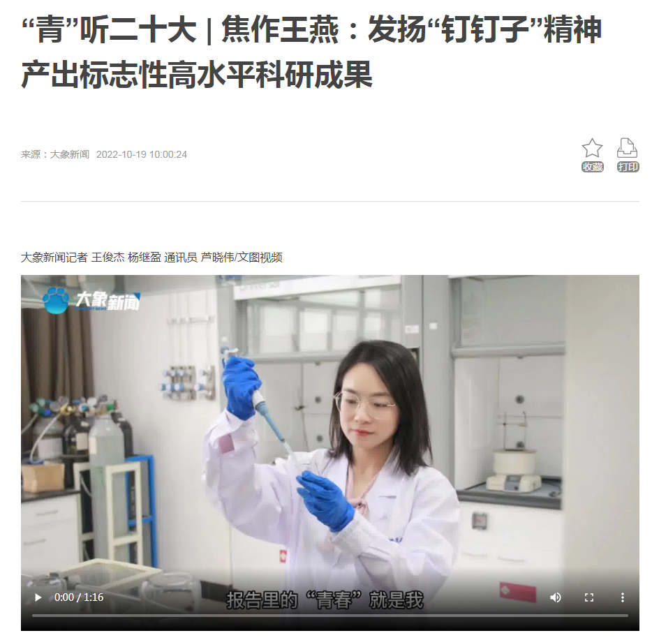 “青”听二十大 | 焦作王燕:发扬“钉钉子”精神 产出标志性高水平科研成果