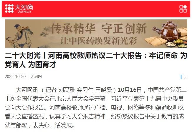 二十大时光丨河南高校教师热议二十大报告:牢记使命 为党育人 为国育才