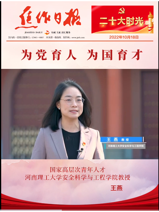 目前, 王燕所在的河南理工大学安全科学与工程学科,在2021年入选了河南省高校“双一流”创建工程,也是全国第四轮学科评估中河南省普通高校唯一的A类学科。在日常的教学和科研工作中,王燕把握当前一流学科创建的大好机遇,着眼服务国家发展战略和重大需求,带领团队打破观念围墙,发扬“钉钉子”精神,着力突破安全技术领域的瓶颈问题,攻克工程应用需求中的“卡脖子”技术;在矿山安全传统优势的基础上,加强校际合作,推进学科融合,积极开展新兴交叉领域研究,向化工安全、公共安全及智能化防灾减灾技术等方向进军。
