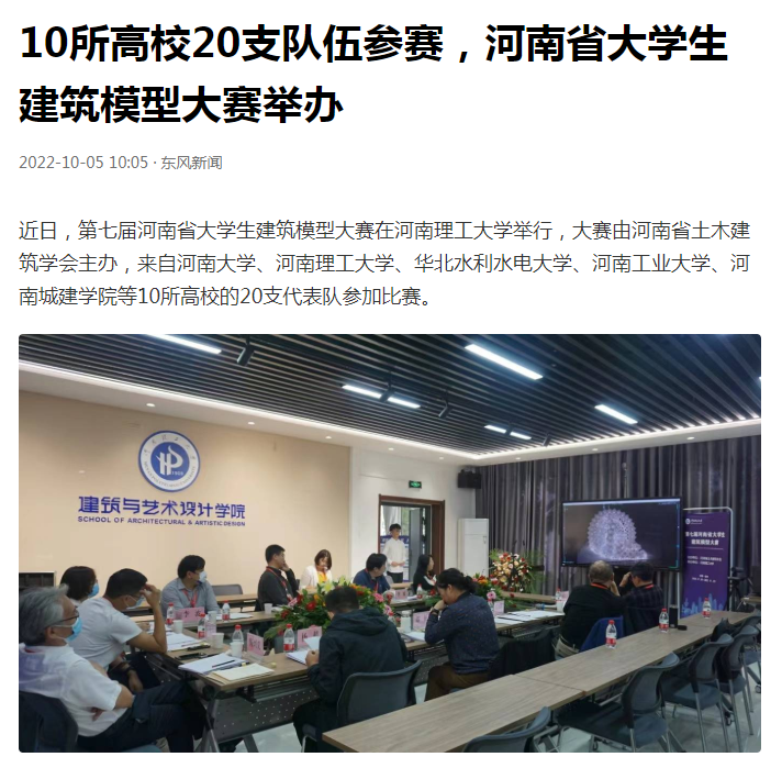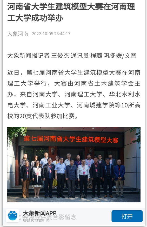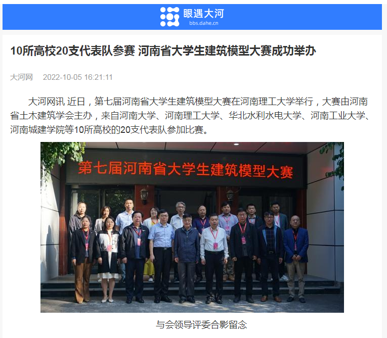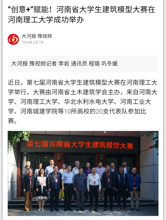 近日,第七届河南省大学生建筑模型大赛在河南理工大学举行,大赛由河南省土木建筑学会主办,来自河南大学、河南理工大学、华北水利水电大学、河南工业大学、河南城建学院等10所高校的20支代表队参加比赛。