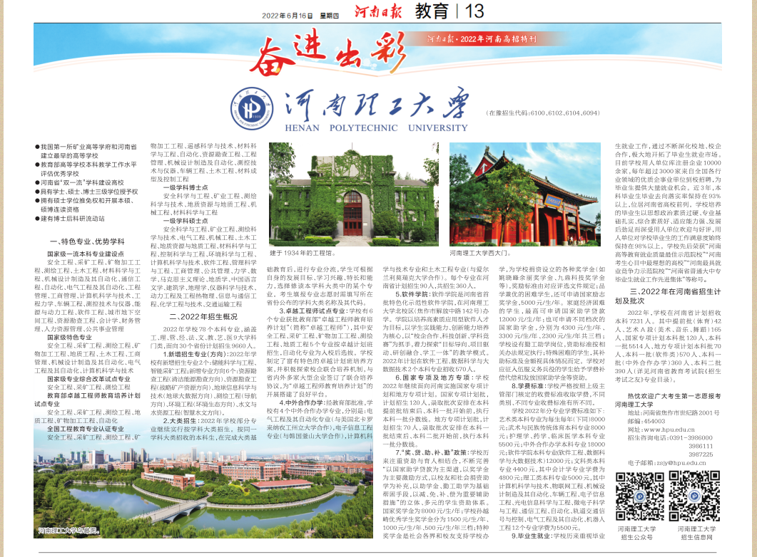 热忱欢迎广大考生第一志愿报考河南理工大学!