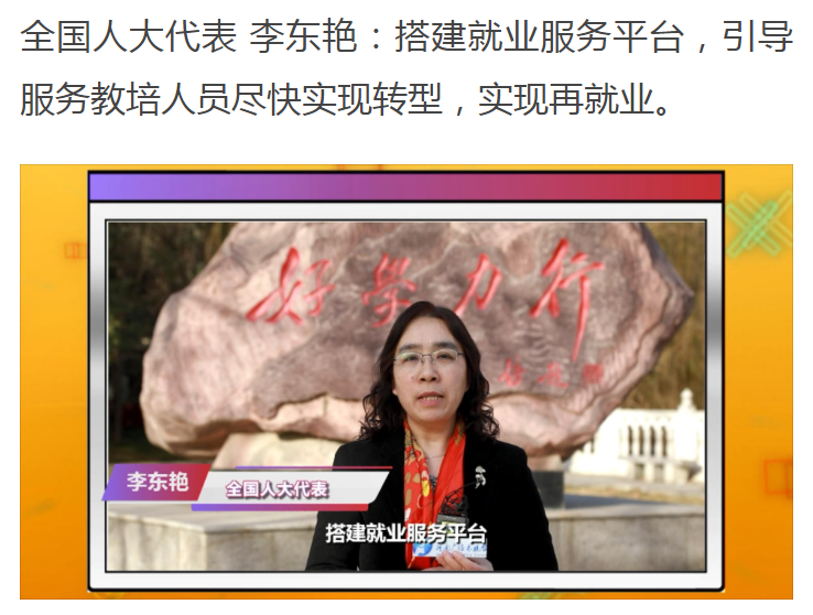 全国人大代表 李东艳:搭建就业服务平台,引导服务教培人员尽快实现转型,实现再就业。