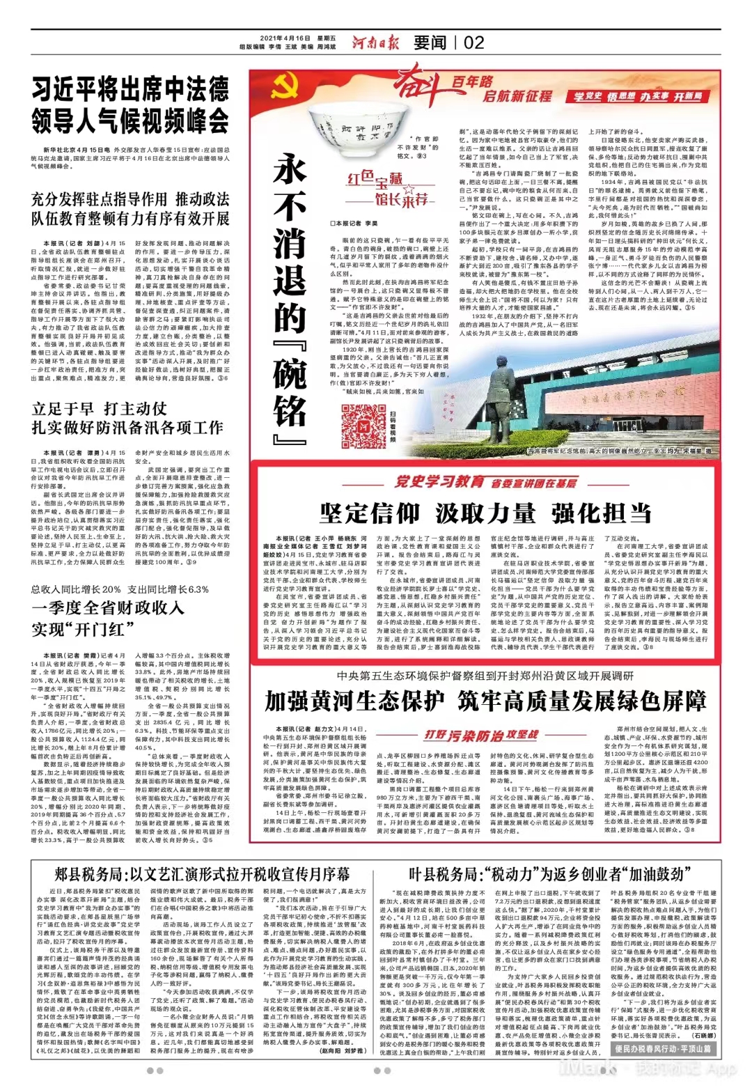 4月16日,《河南日报》第2版“党史学习教育省委宣讲团在基层”栏目,以《坚定信仰 汲取力量 强化担当》为题,报道了党史学习教育省委宣讲团成员、省委党史研究室副主任李海民走进我校开展宣讲的情况。