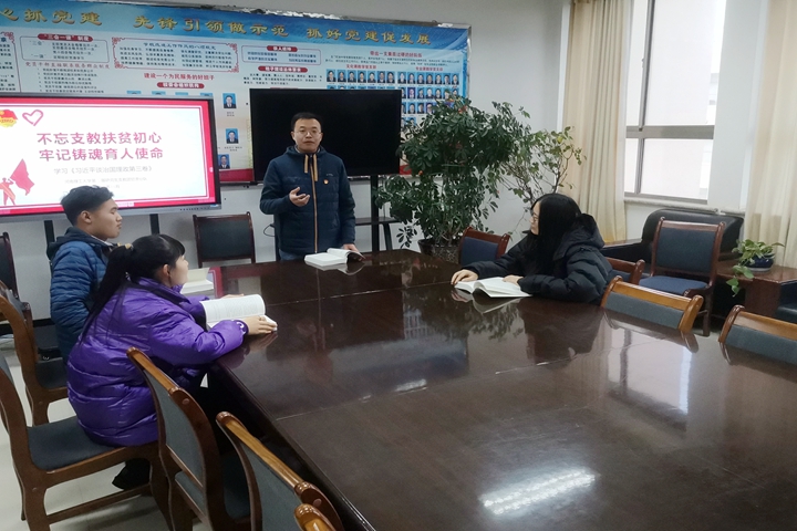 河南理工大学能源学院研究生支教团学生刘佳伟在为支教团成员上党课