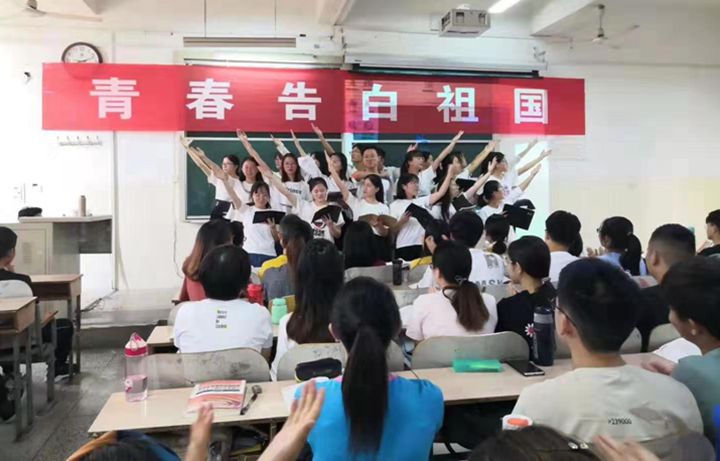 “改革开放以来,我们解放思想大胆试,大胆干,干出了一个新天地。”“习近平总书记展开了建设富强民主文明和谐美丽社会主义现代化国家的新蓝图。”“我们应当牢记习近平的嘱托,争做有理想,有本领,有担当的新时代青年。”同学们热情讴歌了党领导人民在革命、建设和改革进程中创造的辉煌成就,唱响新时代大学生“永远跟党走”的信仰之歌。最后,同学们共同演唱了歌曲《我和我的祖国》,高喊“我们是五星红旗护旗手,五星红旗你是我们的骄傲,我们都有一个偶像叫中国,中国由我们来守护,中国勇敢飞,我们永相随,为你骄傲,我的祖国”,将告白活动推向了高潮。