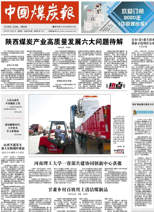 《中国煤炭报》2019年11月25日第1版报道内容如下: