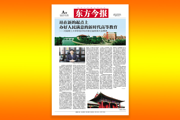 《东方今报》2019年10月16日第AⅢ版整版以《站在新的起点上办好人民满意的新时代高等教育——河南理工大学积极对标对表全省教育大会精神》为题并配发图片,《河南商报》2019年9月10日第A7版以《河南理工大学积极对标对表全省教育大会精神》为题,人民网2019年9月12日以《站在新的起点上办好人民满意的新时代高等教育》为题,报道校党委书记邹友峰对学校积极对标对表全省教育大会精神,深入学习贯彻习近平总书记关于教育重要论述和全国教育大会精神的深刻见解。相关内容如下: