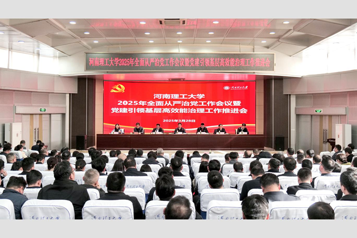 本网讯(记者 孟祥燕/文 通讯员 李英键/图)3月28日下午,学校在力行楼学术报告厅召开2025年全面从严治党工作会议暨党建引领基层高效能治理工作推进会。深入学习领会习近平总书记关于全面从严治党的重要论述,贯彻落实上级会议精神,回顾总结2024年工作,部署安排2025年工作。校领导刘永涛、赵同谦、解伟、赵晓军、程伟、李振华、丁亚红出席会议。
