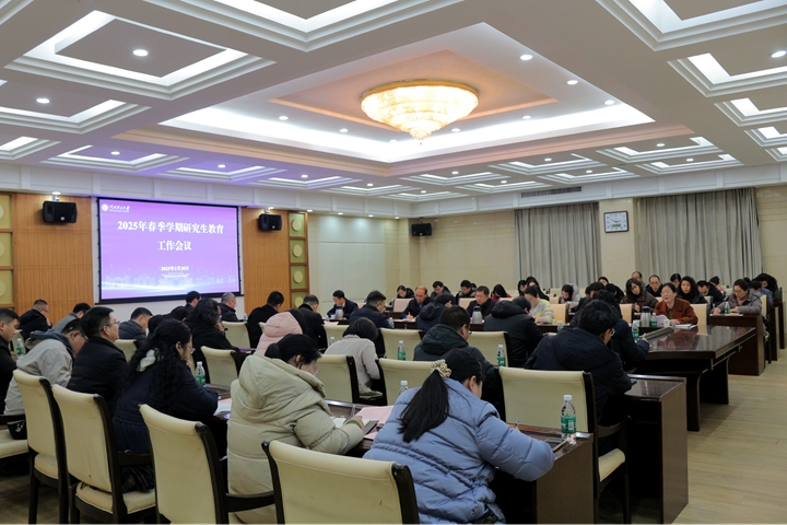 本网讯(通讯员 张记升/文 曹文昕/图)2月20日下午,学校2025年春季学期研究生教育工作会议在力行楼一楼会议室召开。副校长边亚东出席会议,各学院主管研究生工作的副院长、研究生管理办公室主任(秘书)和研究生院全体人员参加会议,会议由研究生院院长陈俊杰主持。