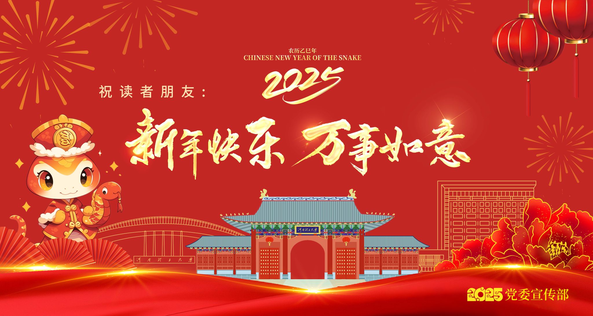 日征月迈,时盛岁新。值此新元肇启之时,校党委宣传部携校园新闻网向长期以来关心和支持学校新闻网的各级领导、各界朋友、广大校友和全校师生员工致以新年的问候和诚挚的祝福!向所有为学校新闻网建设和发展做出努力的广大作者和读者朋友表示崇高的敬意和衷心的感谢!