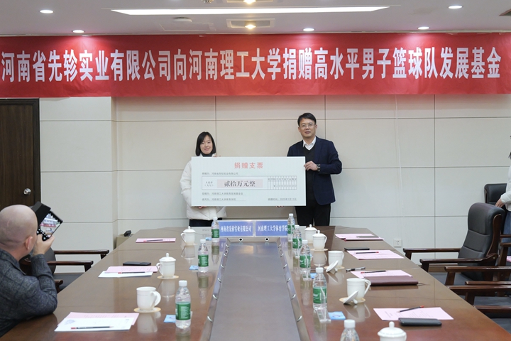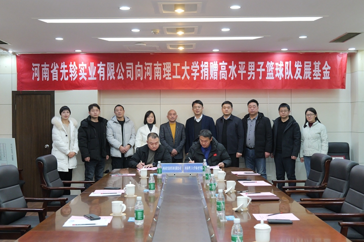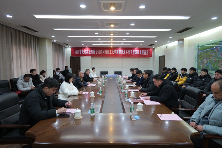 本网讯 寒冬时节,却亦有暖。1月11日下午,河南省先轸实业有限公司向学校捐赠高水平男子篮球队发展基金,学校在行政楼一楼会议室举行捐赠仪式。副校长李振华、河南省先轸实业有限公司董事长崔明亮出席仪式。仪式由体育学院党委副书记马志洋主持。