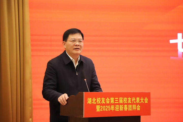 邹友峰代表学校讲话。他简要介绍了学校近年来各项事业取得的成就,指出湖北校友会第三届理事会的产生,标志着校友会工作踏上了新征程,希望湖北校友会一要建设温馨家园,用心关怀校友,把更多的湖北校友组织起来、团结起来、凝聚起来,努力办成全国最好的校友会;二要架起沟通桥梁,用情回馈母校,帮助校友单位与母校在协同育人、科技创新、成果转化、招生就业等方面开展深度合作,促进校友与母校合作共赢、共同发展;三要凝聚校友智慧,用行服务社会,牢记“在长江经济带高质量发展中奋勇争先,加快建成中部地区崛起的重要战略支点”的殷殷嘱托,为奋力谱写中国式现代化湖北篇章作出新贡献。