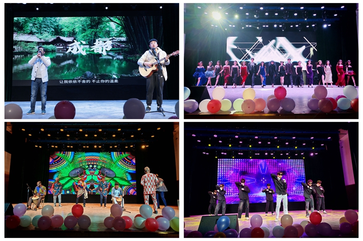 晚会在一曲动感的舞蹈《Shooting Star》中拉开帷幕,同学们的飒爽舞姿为晚会注入激情与活力。接着,各种形式的节目精彩纷呈,一次次将晚会气氛推向高潮,幽默话剧《尤利娅,别哭》、风趣相声《八扇屏》、诙谐小品《时间都去哪儿了》既轻松欢乐,又发人深省,让大家感受到了语言的魅力;歌曲《送你一朵小红花》通过婉转优美的嗓音、细腻的情感传递温暖和力量;舞蹈《what’s love》、歌曲《青春联唱踏新程》展现了青年学子对美好生活的向往和勇立时代潮流的决心;汉服走秀《一画千年》用中国传统服饰之美传递中华优秀传统文化的风韵;音乐情景剧《志愿小美满》和舞蹈《等你的回答》体现了学生团体甘于奉献、敢于担当的精神风貌;学生们尽显青春风采,教师们也展现自己独特的魅力,通过舞蹈《欢迎进入X0年代》融合不同年代流行元素,带领大家一起回顾那些难忘的青春记忆。