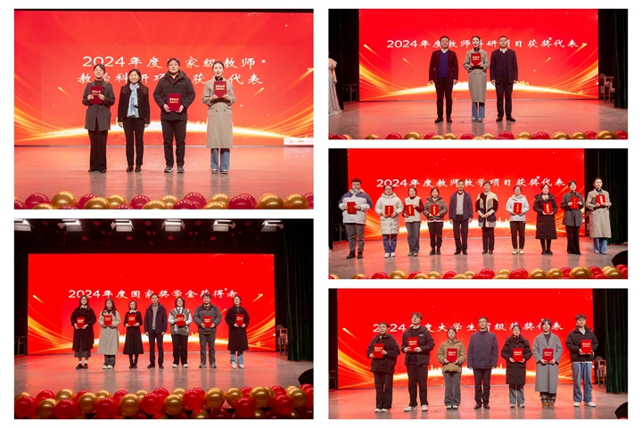 表彰大会上,该院党委书记余本胜代表学院对2024年度考核优秀单位、年度优秀服务团队、年度教学突出贡献奖、年度科研突出贡献奖、年度科研之星、年度最美研究生导师、年度最美教育工作者予以表彰。这既是对学院2024年取得成绩的充分肯定,也为来年大家撸起袖子加油干树立榜样,进一步激发全院师生的干事热情。