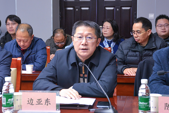 边亚东代表学校致欢迎辞,从办学历史、办学规模、办学特色三个方面简要介绍了学校的基本情况,回顾了测绘科学与技术学位点建设取得的成绩,希望专家多提宝贵意见,帮助学校进一步加强学位点建设,为培养优秀人才、服务社会发展作出更大贡献。
