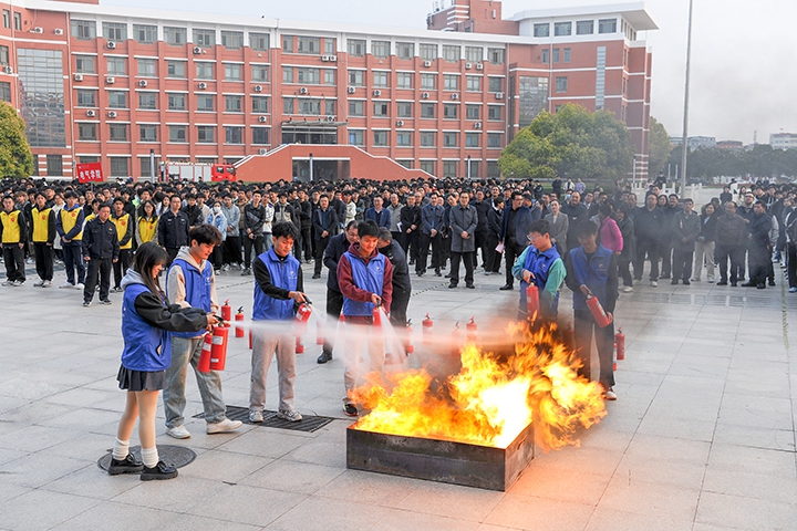 学生操作灭火器救火演练