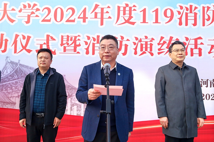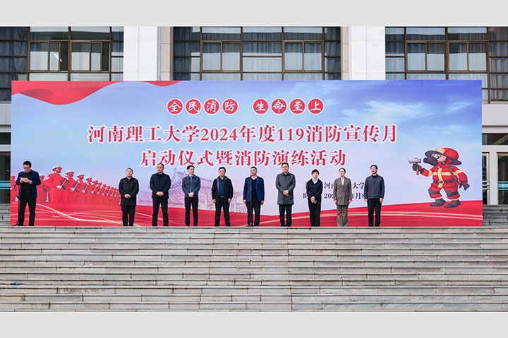 本网讯(通讯员 王孚杰 陈晨/文 记者 李为群 通讯员 李英键/图)11月8日下午,学校于力行楼学术报告厅、世纪广场前举办2024年度119消防宣传月启动仪式暨消防演练活动,校长赵同谦、副校长程伟出席活动,焦作市消防救援支队指战员、相关职能部门、各二级单位消防安全负责人、各学院副书记、辅导员及学生代表参加活动。专题培训由程伟主持,消防演练由保卫部(处)长李壮文主持。