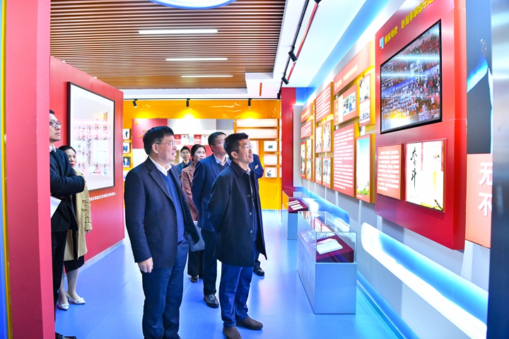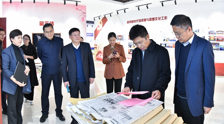 范绪锋一行参观调研校史馆,并了解了学校近年来在《中国教育报》的发稿情况