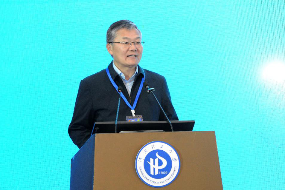 卞正富致辞。他对河南理工大学为会议筹备做出的努力表示衷心感谢,希望本次论坛为大家提供一个技术交流、合作探讨的优质平台,共享我国煤炭及相关行业在煤基碳减排和资源化利用领域取得的最新科技成果,推动碳中和科学与工程理论技术体系发展,实现能源资源行业技术升级与产业转型,服务经济社会发展全面绿色转型。