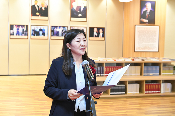邹友峰表示,朱训先生作为地质勘探战线的著名专家,始终心怀“国之大者”,情系地矿教育事业。在百年校庆时,他设立了“朱训教育奖励基金”,激励着广大师生追求卓越、勇攀高峰。他还亲笔题词“创建一流大学,发挥学科优势”,谋划学校长远发展,多次亲临指导工作、捐赠珍贵书籍、作学术报告,给予学校高屋建瓴的引领和指导,为学校的跨越发展作出了重要贡献。“朱训书屋”中珍贵的藏书记录了朱训先生对地矿事业的卓越贡献,彰显着严谨治学的大师风范,传承着“以献身地质事业为荣、以艰苦奋斗为荣、以找矿立功为荣”的精神,饱含着对理工师生的殷切期望。希望全体师生以朱训先生为榜样,胸怀祖国、脚踏实地,追求卓越、砥砺前行,为服务国家安全生产、能源行业进步发展作出新的更大贡献。