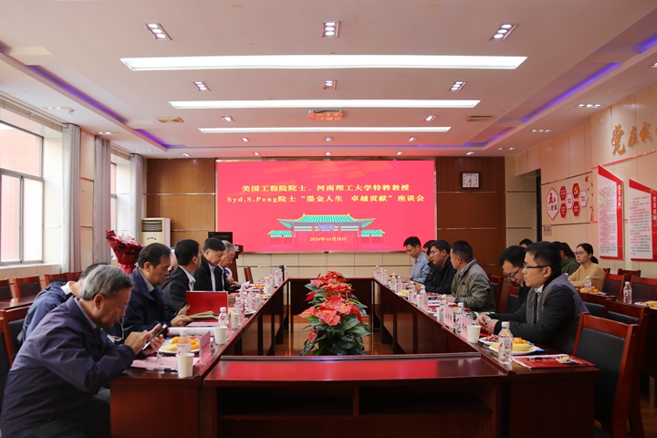 本网讯(通讯员 赵佳 姬培鑫 楚克明)10月28日,美国工程院院士、河南理工大学特聘教授彭赐灯“墨金人生 卓越贡献”座谈会在能源学院201会议室举行。原副校长周英、能源学院全体院领导和相关教师代表近30人出席座谈会,座谈会由该院副院长李东印主持。