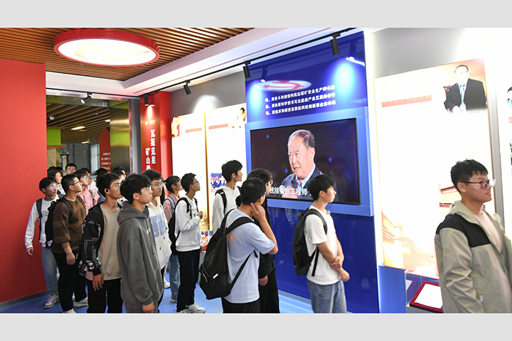 揭幕仪式后,与会领导、师生共同参观了院士馆。院士馆以“矿山的脊梁”为主题,分“瓦斯克星 矿山脊梁”“荣耀中原 誉满华夏”“饮水思源 情系母校”三个部分,珍贵的照片和展品,翔实生动地展现了张院士作为立德修身的楷模、干事创业的典范,用追求和探索高擎起科技创新事业的丰碑,是学校大力弘扬科学家精神和教育家精神的重要教育基地。