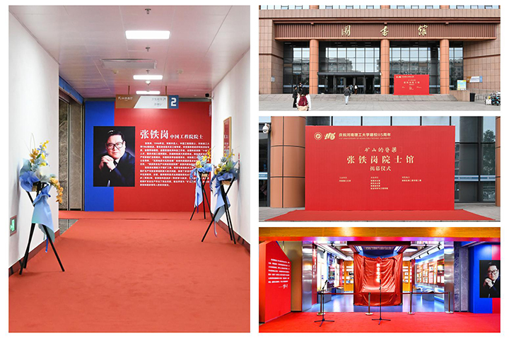 在与会人员的见证下,张铁岗、邹友峰共同为“矿山的脊梁——张铁岗院士馆”揭幕。