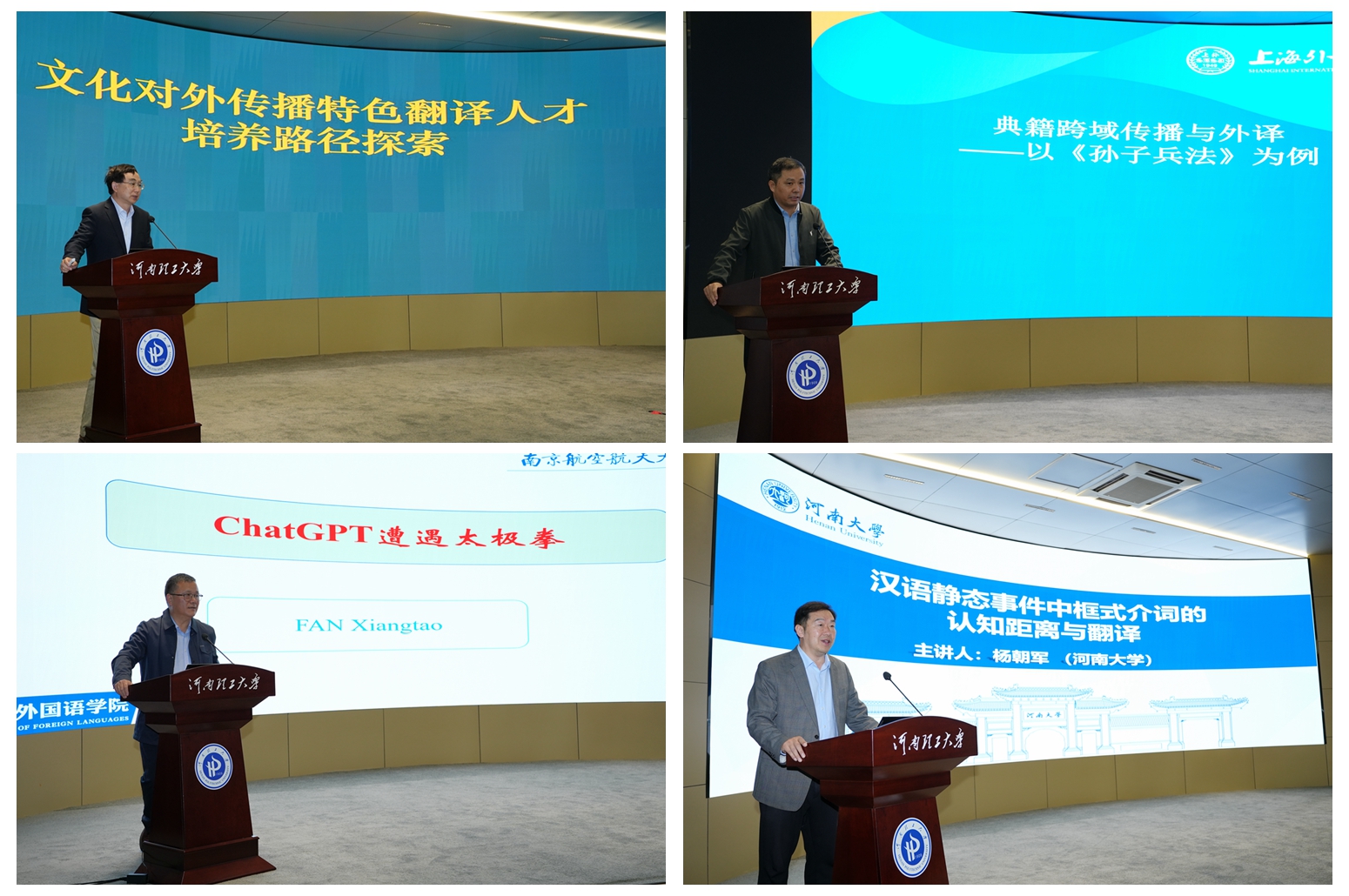 会议上,专家学者围绕会议议题展开了深入探讨和交流。上海外国语大学韩子满教授以《孙子兵法》为案例,揭示了中国文化在国际传播中所遭遇的问题,并给出了有效的解决方法。河南大学教授杨朝军指出,框式介词作为汉语特有的语法结构,其认知距离的处理对于准确传达太极文化内涵至关重要。杨玮斌从多个维度出发,深入探讨了如何培育特色高端国际化翻译人才。南京航空航天大学范祥涛教授通过太极拳文化翻译案例,展示了如何巧妙使用ChatGPT。东北师范大学周桂君教授指出,中国古代核心经典翻译研究不仅是中国文化国际传播的一部分,更是推动文化交流互鉴的关键环节。上海外国语大学张爱玲教授从多个维度探讨了技术革命对新形势背景下翻译专业学位建设带来的挑战以及应对策略。西交-利物浦大学张小玲教授以太极拳/太极文化作为案例, 探讨了中华文明的对外阐释与国际传播策略路径研究。黔南科技学院赵平教授指出了翻译教材编撰中存在的问题和面临的困境,为有效进行翻译教学提供了宝贵经验。