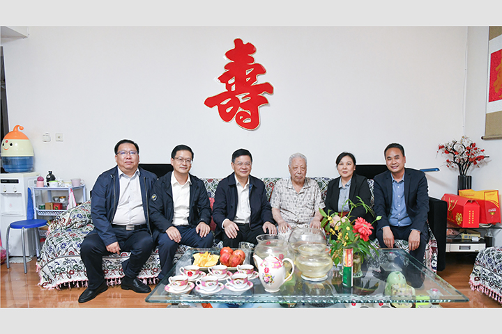 本网讯(通讯员 梁心愿/文 通讯员 刘琼 记者 李为群/图)在中华人民共和国成立75周年之际,按照省委有关工作安排,9月30日,校党委书记邹友峰、校长赵同谦、校党委副书记解伟分别带队,对党龄超过50年且年龄在80岁以上老党员和省优秀共产党员代表进行走访慰问,向老党员和优秀党员转达党中央和省委对他们的关怀,代表学校党委、行政向他们致以崇高敬意和诚挚问候。