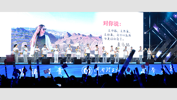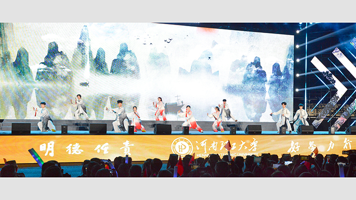 体育场内座无虚席,2024级新生们怀揣着对大学生活的憧憬与期待,齐聚一堂。联欢会在《青春遇见》这一歌舞表演的欢快节奏中拉开序幕,同学们以动感的旋律与灵动的舞姿,充分展现了青春的活力与风采。视频《你好,新理工人》真诚表达了学校对广大学子的热烈欢迎。《百年理工》以生动的画面和细腻的叙事,展示理工大百年的传承与发展。《河南理工大学赋》以深情的朗诵,描绘了河南理工大学的发展历程、辉煌成就和奋斗精神。《河南理工大学校歌》深情的表达了百年来学校自强不息的办学精神薪火相传,更蕴含着对新理工人的深切期望,以及全校师生对学校的无比热爱与自豪情感。武术表演《武动青春》,参演同学身姿矫健、动作刚劲有力,一招一式间尽显中华武术的博大精深。《乘风少年》街舞表演用炫酷的舞蹈和自信笑容展现无限风采,他们在舞台上尽情挥洒汗水,如同乘风的少年,勇往直前,不畏挑战。新生辅导员共同合唱《想把我唱给你听》以温柔的旋律和动人的歌词,唱出了对新生们的欢迎和关爱。歌曲联唱《光明》用一首首经典的歌曲,传递着希望和力量。视频《亲情》展现父母对子女的殷切期望,歌曲《你养我长大,我陪你变老》则以深情的演唱,触动了在场每一个人的心弦,唤起了大家对亲情的共鸣与感恩之情。教官集体表演的《强军先锋》军体拳用响亮的口号、整齐划一的动作展现出良好的军事素养和团队精神,更体现了河南理工大学学子们的爱国情怀和报国之志。歌舞《如愿》用优美的舞姿和动人的歌声,表达了对祖国的热爱和对美好生活的向往。朗诵《共和国脊梁》以激昂的语调、饱满的热情,赞颂了为国家建设和发展做出杰出贡献的英雄们,让新生们深刻认识到自己肩负的使命和责任。歌曲《追梦的人》唱出每位学子的心声,鼓励他们在大学的舞台上勇敢追求自己的梦想。最后,《复兴的力量》以激情四溢的表演,展现了中华民族伟大复兴的磅礴力量与坚定信心,为整场联欢会画上了圆满的句号。