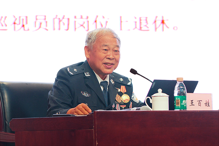 王百姓同志结合个人的成长和工作经历,从人民利益高于一切、人生的意义在于创造、在奉献中实现人生价值等三个方面,以生动的事例、真挚的情感,诠释了对祖国的赤诚大爱和对人民的赤子深情,充分展现了新时代人民警察对党忠诚、甘于奉献的精神风貌,给现场师生上了一堂生动、深刻的爱国主义教育课。他刻苦学习知识、对待工作精益求精,无数次徘徊在生死边缘,用生命守护生命,以实际行动彰显共产党员的责任与担当。他的事迹震撼人心,感人至深,现场掌声不断,经久不息。
