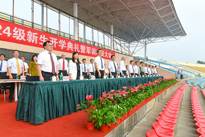 国歌慷慨雄壮,五星红旗在全场注目下冉冉升起,新生开学典礼正式拉开帷幕。