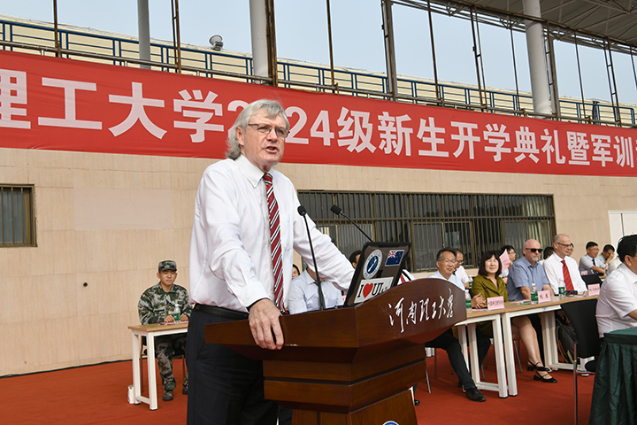 奈杰尔·希利致辞,总结了两校合作办学取得的成绩,并为同学们送上了美好的祝福。