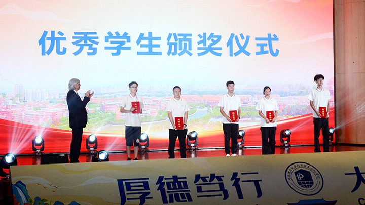 Nigel Healey(奈杰尔·希利)致辞,他向2024级新生及家长表示祝贺和欢迎,并重点介绍了爱尔兰利莫瑞克大学的优势学科、与河南理工大学在教育和研究领域的长期合作情况,以及学院跨文化教育的特点,希望同学们充分利用学院提供的成长环境和发展机会,刻苦钻研,勇于创新,追求卓越,不断取得优异成绩。