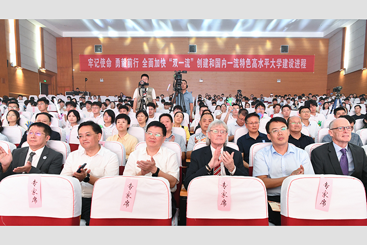 本网讯 与世界牵手,让梦想起航。9月6号下午,利莫瑞克国际学院2024级新生开学典礼暨迎新联欢会在校明德楼音乐厅举行。校党委书记邹友峰、党委副书记解伟,副校长李振华、边亚东等校领导,爱尔兰利莫瑞克大学副校长Nigel Healey(奈杰尔·希利)等一行,学校相关职能部门和学院负责人,以及来自全国15个省份的197名本科生及部分学生家长,共聚一堂,共同开启华彩篇章。