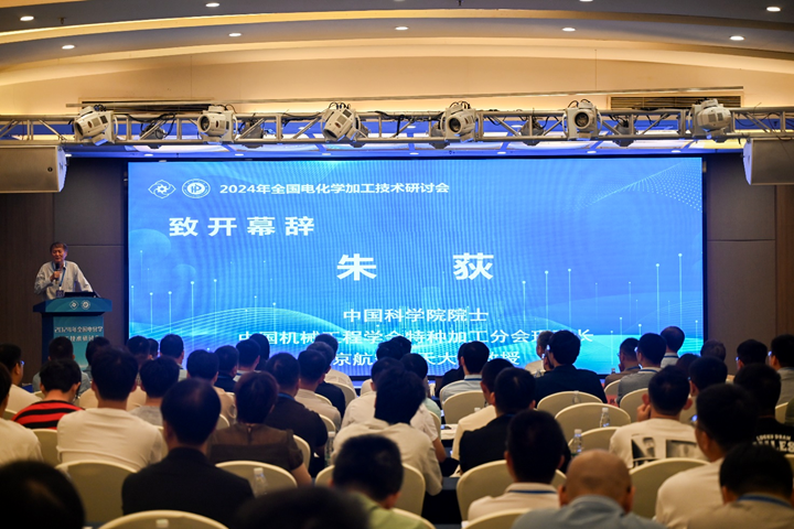 中国科学院院士、中国机械工程学会特种加工分会理事长、南京航空航天大学原校长朱荻教授代表主办单位致开幕辞