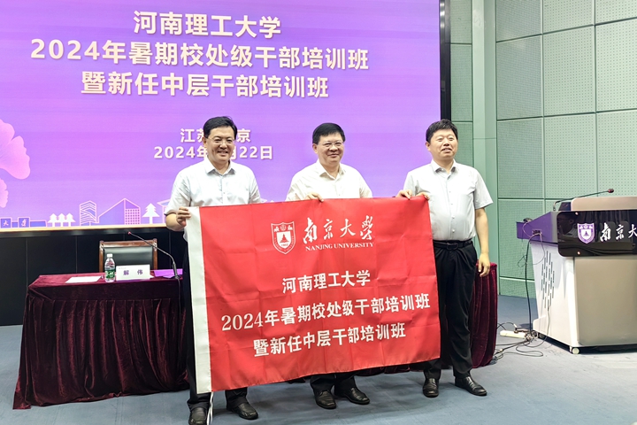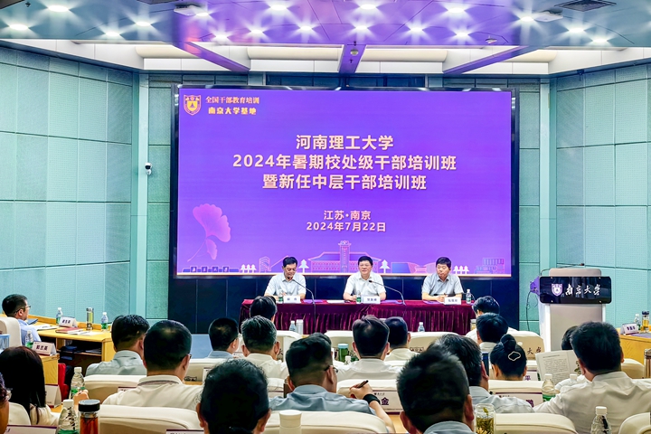 本网讯(记者 鲁小茜 刘婷)为深入推进党纪学习教育,进一步强化干部的党性修养和责任担当,7月22日上午,学校2024年暑期校处级干部培训班暨新任中层干部培训班在南京大学鼓楼校区正式开班。学校党委书记邹友峰作开班动员讲话,南京大学副校长陆现彩,校领导解伟、赵晓军、程伟、李振华、边亚东、丁亚红、谢生荣出席开班仪式。开班仪式由校党委副书记解伟主持。
