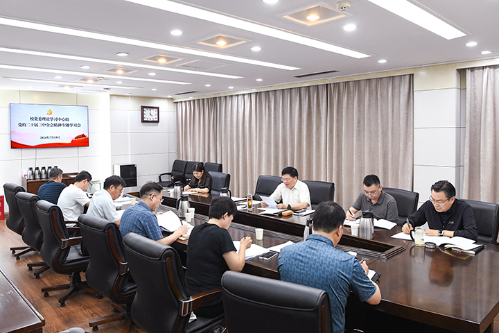 本网讯(记者 马志敏/文 李为群/图)7月19日,校党委理论学习中心组在行政楼二楼会议室召开学习会,专题学习党的二十届三中全会精神。校党委书记邹友峰主持会议,党委理论学习中心组成员参加。