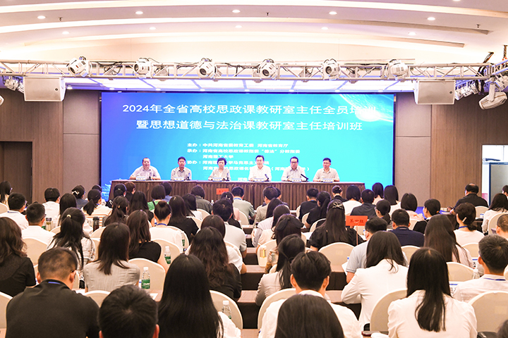 本网讯(通讯员 马静音/文 记者 李为群/图)7月10日至12日,由省委教育工委、省教育厅主办,省高校思政课教指委德法分教指委、河南理工大学承办,我校马克思主义学院和思政课名师工作室协办的2024年度全省思想道德与法治课教研室主任培训班在焦作迎宾馆成功举办。省教育厅思想政治工作处(教材处)处长陈凯,省高校思政课教指委副主任委员、河南财经政法大学副校长朱金瑞,省高校思政课教指委德法分教指委主任委员、南阳理工学院副校长葛晨光,我校副校长程伟出席开班仪式。河南省高校思政课教指委德法分教指委成员、各高校德法课教研室主任及我校马克思主义学院师生参加会议。开班仪式由我校马克思主义学院党委书记洪振涛主持。