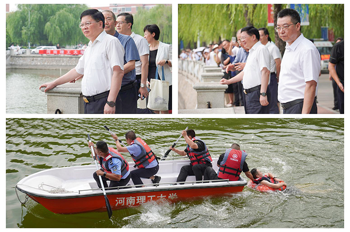 校党委书记邹友峰宣布:“河南理工大学2024年防汛应急演练开始!”