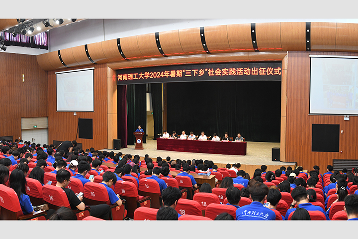 本网讯(通讯员 马雨彤 张元博/文 郇齐齐/图 记者 李为群/图)暑期相约至,青春共践行。7月12日上午,2024年大学生暑期“三下乡”社会实践活动出征仪式在小礼堂举行。校党委副书记解伟出席仪式,党委宣传部、学工部、研工部、教务处、科技处、校团委等职能部门负责人以及各学院团委书记、实践团队指导老师及实践团队成员代表近400人参加了出征仪式。仪式由校团委副书记于江主持。