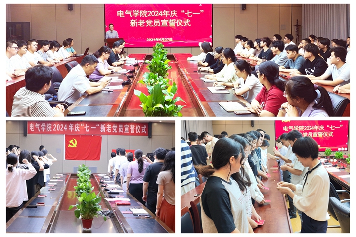 为了表达对党的美好祝愿,进一步激发广大党员的凝聚力和战斗力,6月27日上午,电气学院在院楼101会议室隆重举行了庆“七一”新党员入党宣誓暨老党员重温入党誓词活动仪式,迎接即将到来的党的第103个生日。该院相关领导,教师代表、全体辅导员及全体学生党员等参加仪式。活动由该院党委副书记朱伶俐主持。