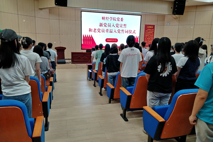 为庆祝中国共产党成立103周年,7月1日,财经学院在经管楼尚为学术报告厅隆重举行新党员入党宣誓和老党员重温入党誓词大会。该院全体师生党员参加了此次活动,活动由副院长张圣利主持。