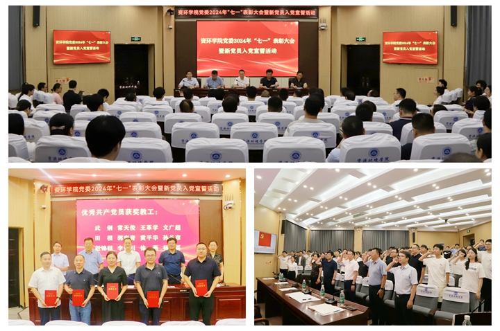 为庆祝中国共产党成立103周年,继承和发扬党的光荣传统,进一步发挥党员的示范引领作用,6月26日,资环学院党委在资环楼第一学术报告厅举行“七一”表彰大会暨新党员入党宣誓活动,该院领导班子成员、党支部书记、优秀党员代表、新发展党员和积极分子、发展对象代表参加会议。会议由党委副书记孙付伟主持。