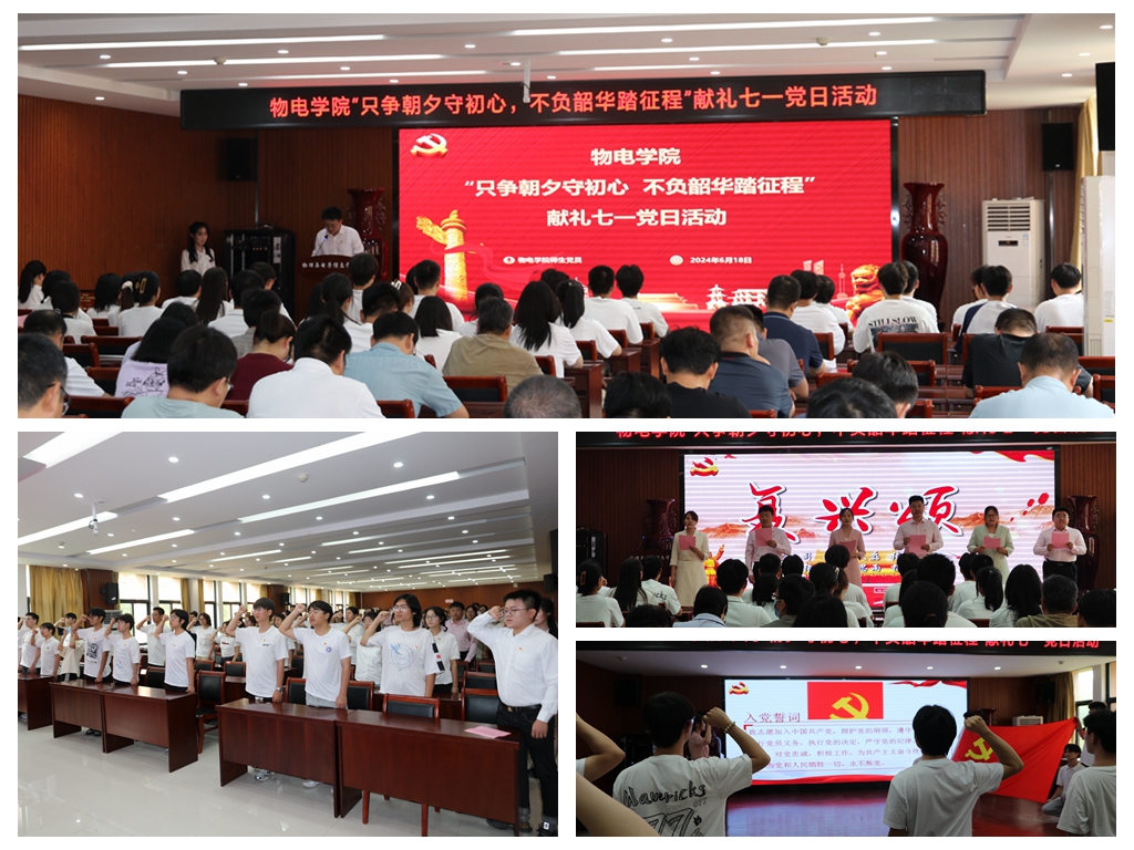 砥砺前行守初心,逐梦奋进新征程。为增强新发展党员责任感、使命感,增进师生党员之间的情谊,充分让党员感受到党组织的温暖, 6月25日,物电学院组织教工党员和新发展党员于综合实验楼大会议室226室,开展“只争朝夕守初心,不负韶华踏征程”献礼“七一”党日活动。