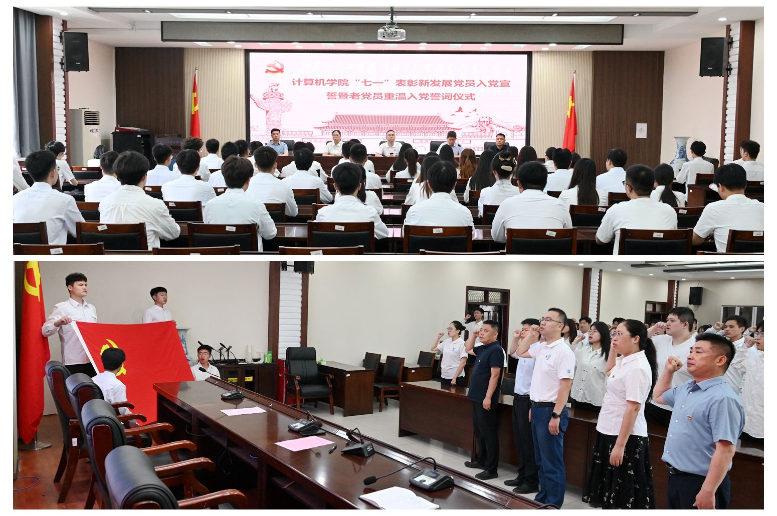 在七一党的生日来临之际,为继承和发扬党的光荣传统,6月28日上午,计算机学院在201会议室开展“七一”新发展党员入党宣誓暨老党员重温入党誓词活动。该院党委委员、学生党支部书记和新发展党员70余人参加了宣誓活动。