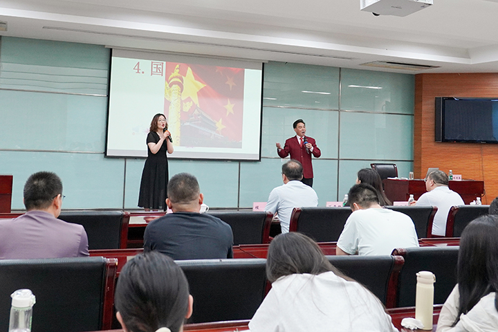 本网讯(通讯员 马静音/文 李英键/图)为贯彻落实习近平总书记对学校思政课建设作出的重要指示精神,打造可听可感、生动鲜活的思政课教学新样态,6月27日,马克思主义学院邀请我校退休教师陈国春、音乐学院副教授孟天屹在明德楼一楼会议室举办音乐思政课。副校长丁亚红出席活动并为陈国春、孟天屹颁发育人导师聘书,教务处、马克思主义学院领导班子成员,以及各教研室主任、思政课教师代表及在校研究生观摩听课。该院党委书记洪振涛主持活动,