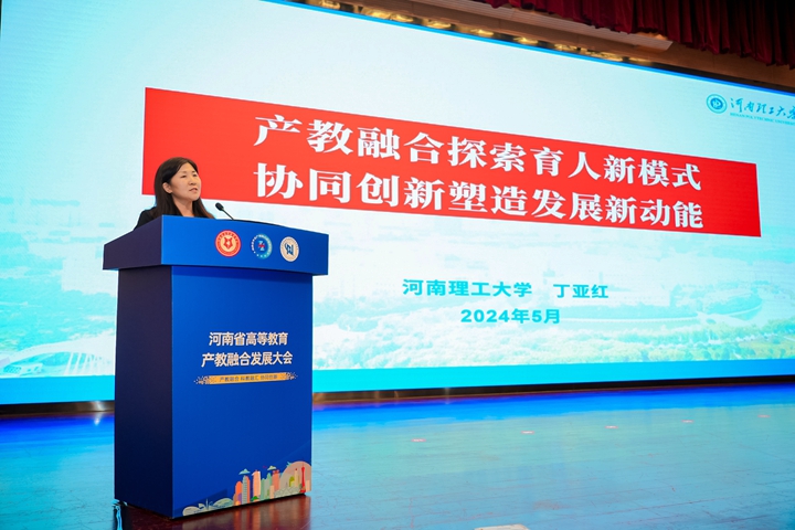 本网讯(通讯员 张秋菊)受河南省高等教育学会邀请,5月18日,副校长丁亚红出席了在郑州国际会展中心召开的河南省高等教育产教融合发展大会,并作题为《产教融合探索育人新模式协同创新塑造发展新动能》的专题报告。河南省发改委、教育厅、高等教育学会领导以及河南省各高校分管教学、科技、产教融合等部门负责人400余人参加。